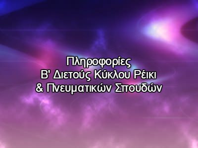 Ο Β’ Διετής κύκλος πνευματικών σπουδών απευθύνεται σε όσους είναι ήδη δάσκαλοι Ρέικι και ενδιαφέρονται να εμβαθύνουν και να εξελιξουν τις πνευματικές σπουδές τους σε ανώτερα στάδια, να γνωρίσουν τις νέες μυστικιστικές και πνευματικές τέχνες και τεχνολογίες, να εμαθύνουν στο μονοπάτι της πνευματικής τους εξέλιξης και φώτισης και να διευρύνουν τα εσωτερικά πεδία Σοφίας, Αγάπης, Δύναμης και Συμπόνιας ως αληθινοί και φωτεινοί Masters του Εαυτού, των συνανθρώπων και της ίδιας της ζωής τους.